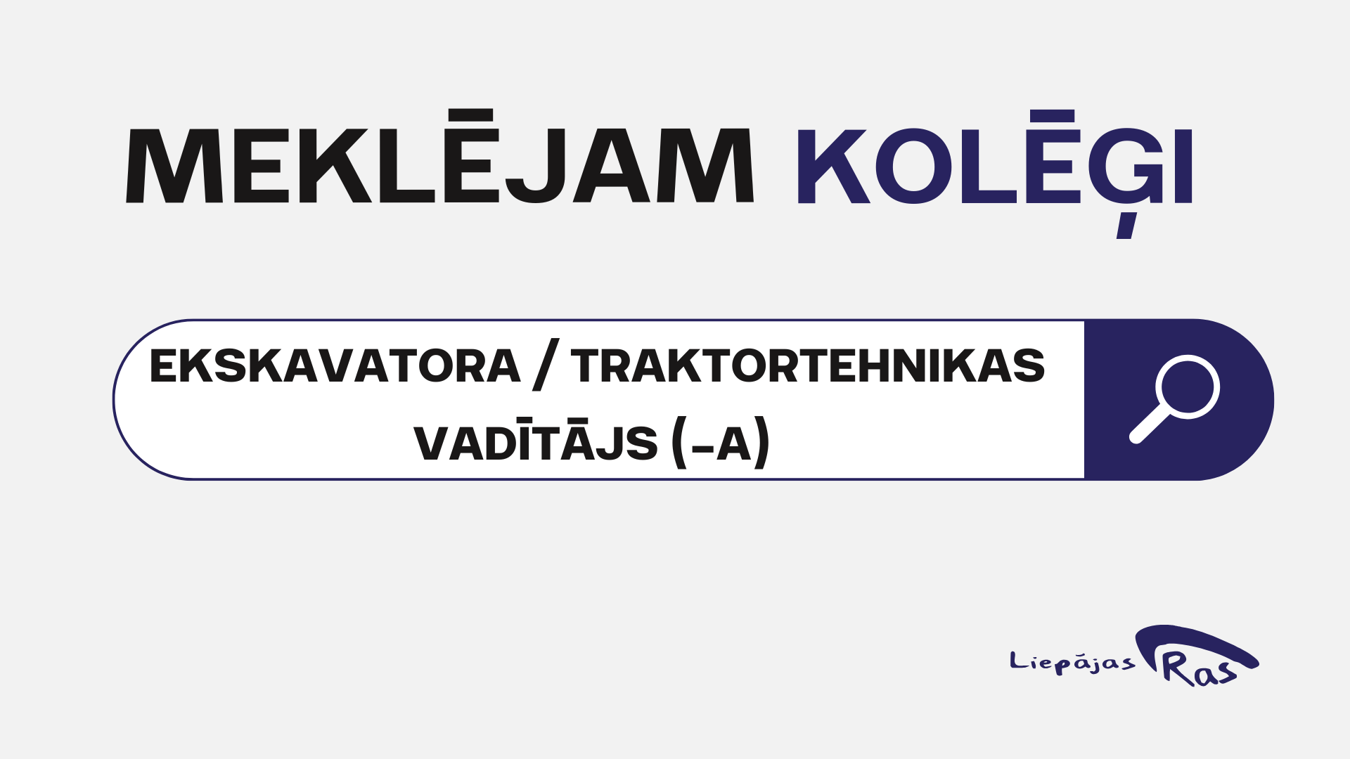 - pretendentu pieteikumus ar norādi “ekskavatora / traktortehnikas vadītājs” sūtīt uz anete.murniece@liepajasras.lv līdz 2026. gada 30. janvārim;