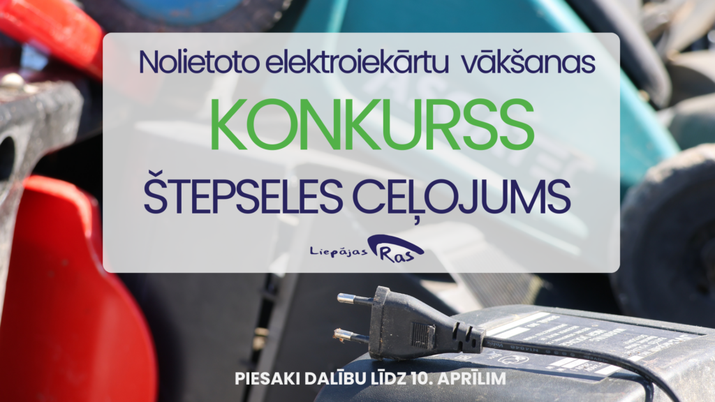 SIA “Liepājas RAS” informē, ka no 23. marta līdz 30. aprīlim aicina izglītības iestāžu audzēkņus piedalīties ikgadējā nolietoto sadzīves elektrisko un elektronisko iekārtu vākšanas konkursā “Štepseles ceļojums”. Konkurss tiek organizēts jau kopš 2011. gada un turpmāk norisināsies reizi divos gados, ar mērķi veicināt skolēnu izpratni par videi un cilvēku veselībai kaitīgo atkritumu pareizu, drošu un … Turpināt lasīt Konkurss “Štepseles ceļojums” ir klāt!